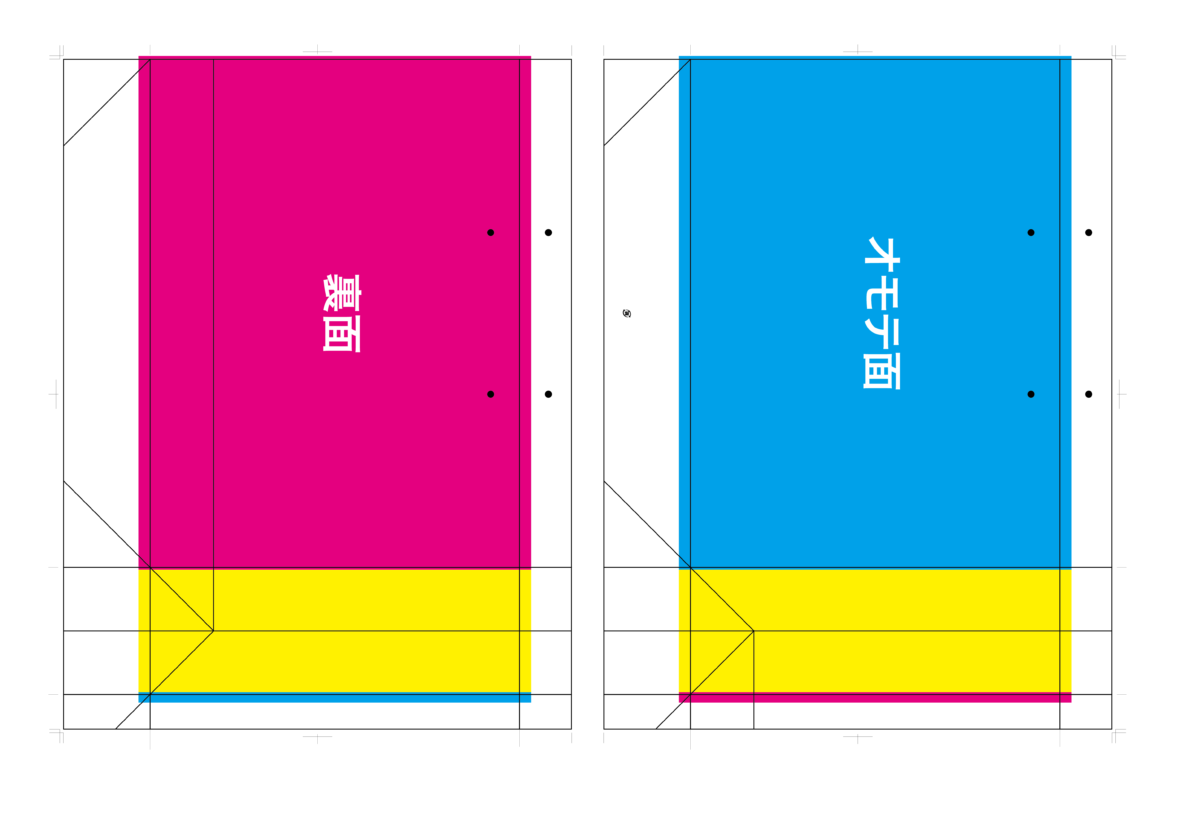 そこで、てさげネットの知恵袋! 私たちは、絵柄をあえて「90度回転」させて配置し、菊判という規格サイズの紙に2面並べて印刷することがあります。印刷後に断裁して貼り合わせることで、大きな紙を使わずに、経済的に作成できるのです。