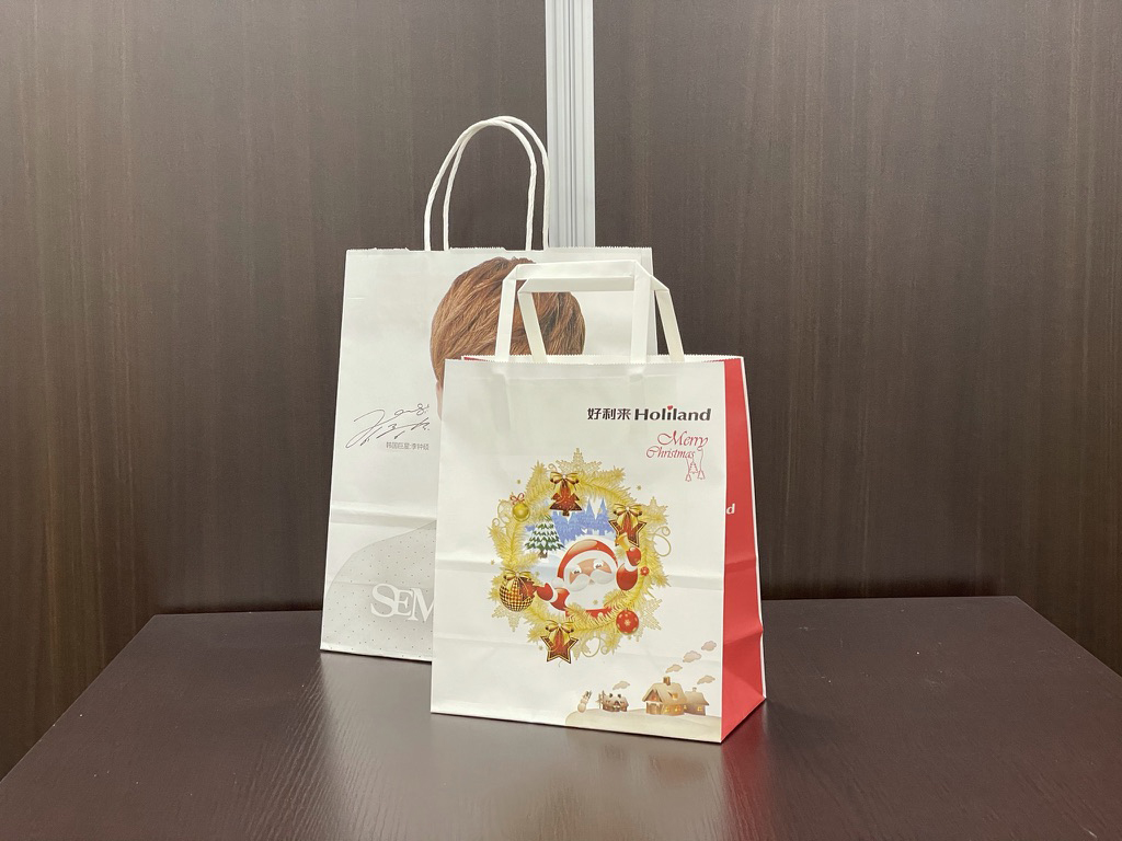 弊社のお客さんのTHALASSA FAMILIA r(サラサファミリア)様の紙袋を作成いたしました。こちらの社長のキラキラデザインと持ち手のオレンジのサテンリボンが目を引きます。 用紙も厚めで海外生産でした。納期は約2か月(旧正月時期以外)かかりますが、と...
