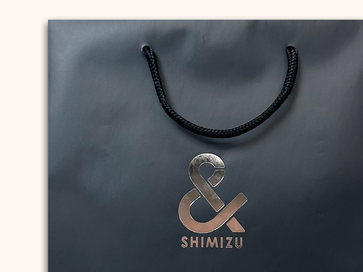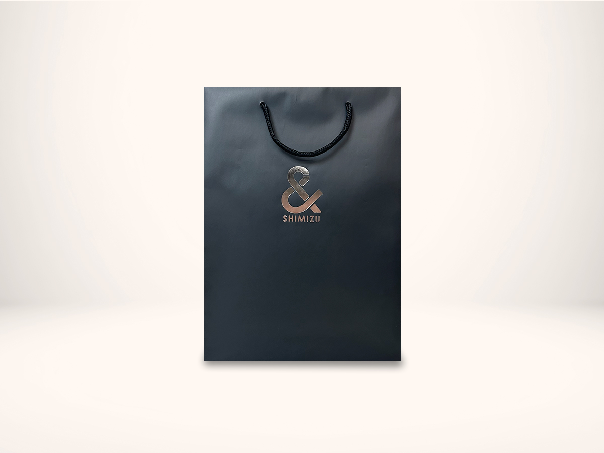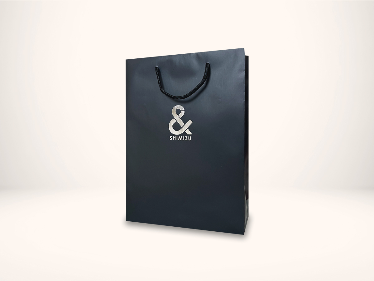 企業ロゴを1色の箔押しにすることで、シックで高級感のある紙袋に。